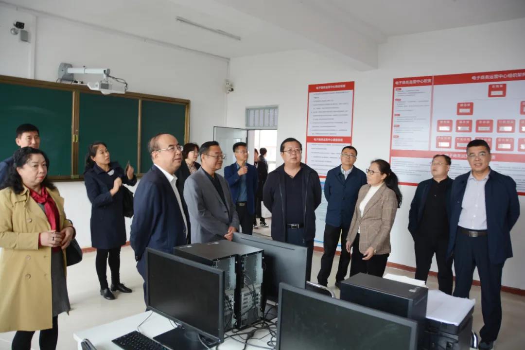赵青山一行实地参观了校园建设、电商直播实训室、农牧实训基地文络式光伏玻璃大棚、智能日光温室大棚、食用菌菌包生产车间、养羊场、珍禽养殖场及培训中心等实习实训场所,并听取了校领导的详细介绍。