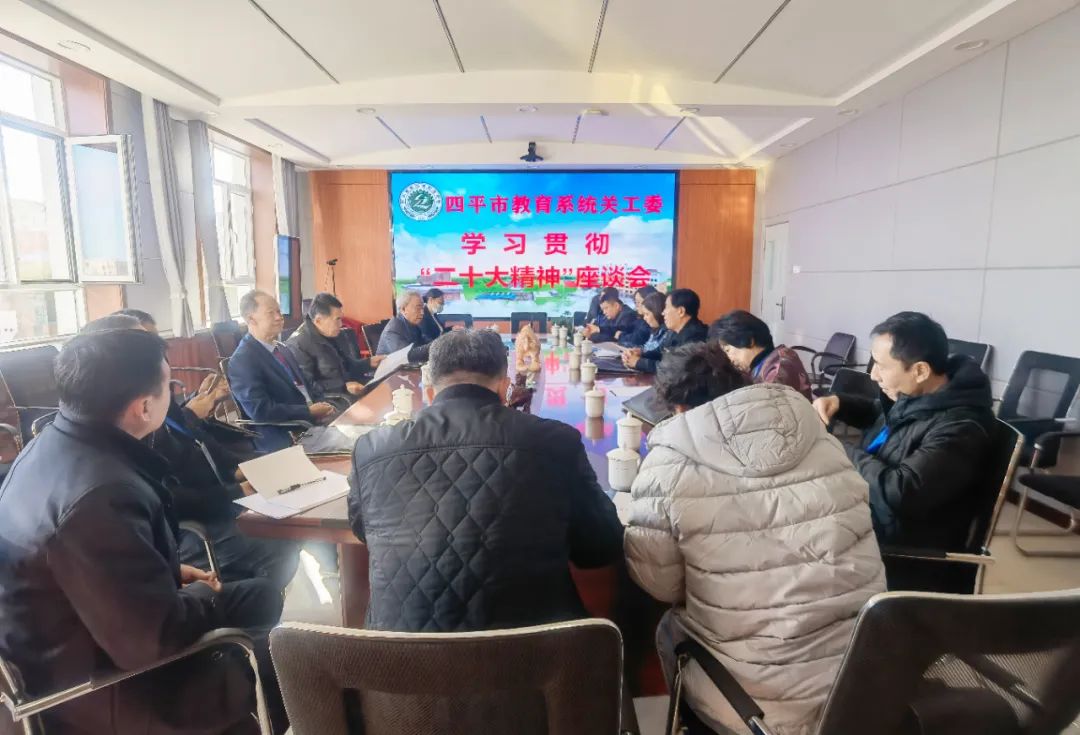 同时,四平市教育系统关工委学习贯彻“二十大精神”座谈会也在学校会议室召开。