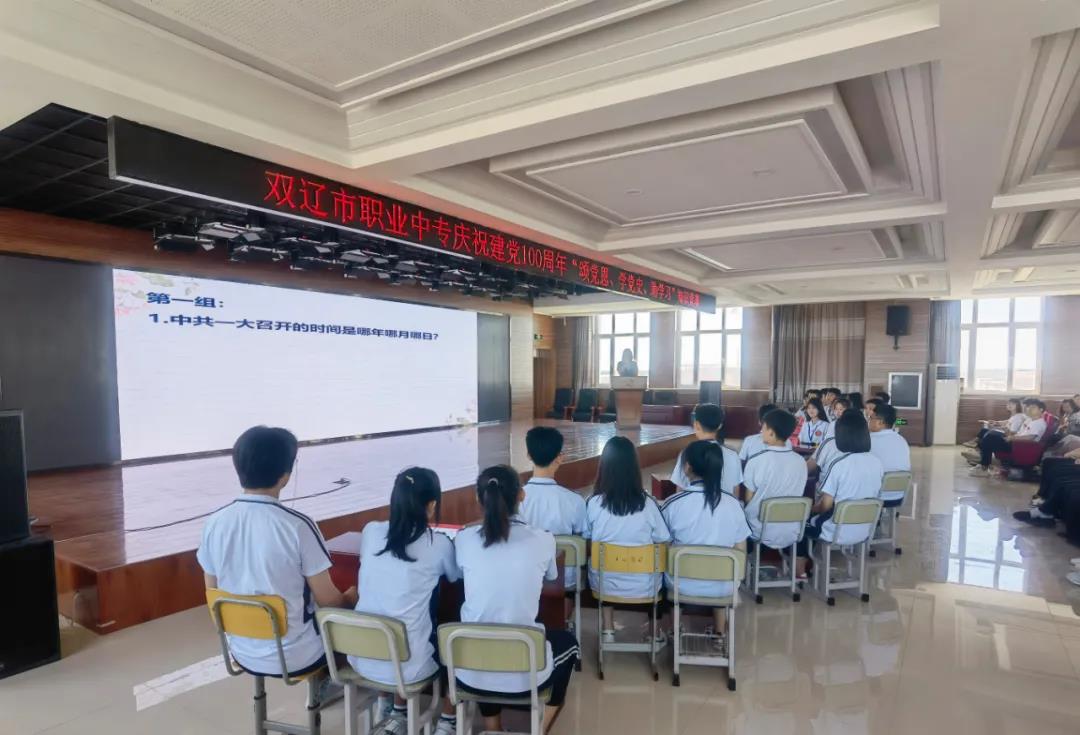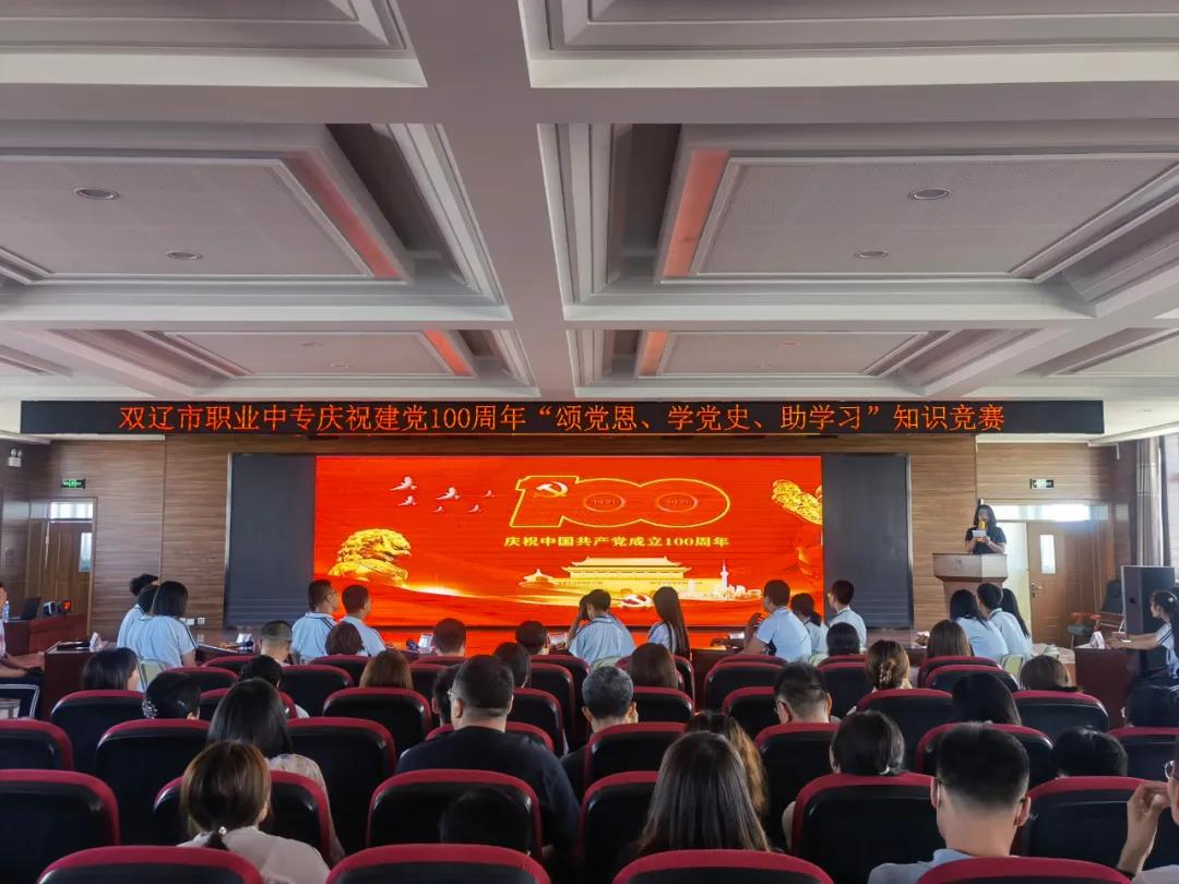 为庆祝中国共产党成立100周年,回顾党从成立到发展壮大的光辉历程,感恩没有共产党就没有新中国,没有共产党就没有今天全面小康的幸福生活,6月22日,双辽市职业中专开展庆祝建党100周年“颂党恩、学党史、助学习”知识竞赛,党总支书记左玉卓、工会主席李明纯、副校长巫成彦、党员干部及师生400余人参加了活动。