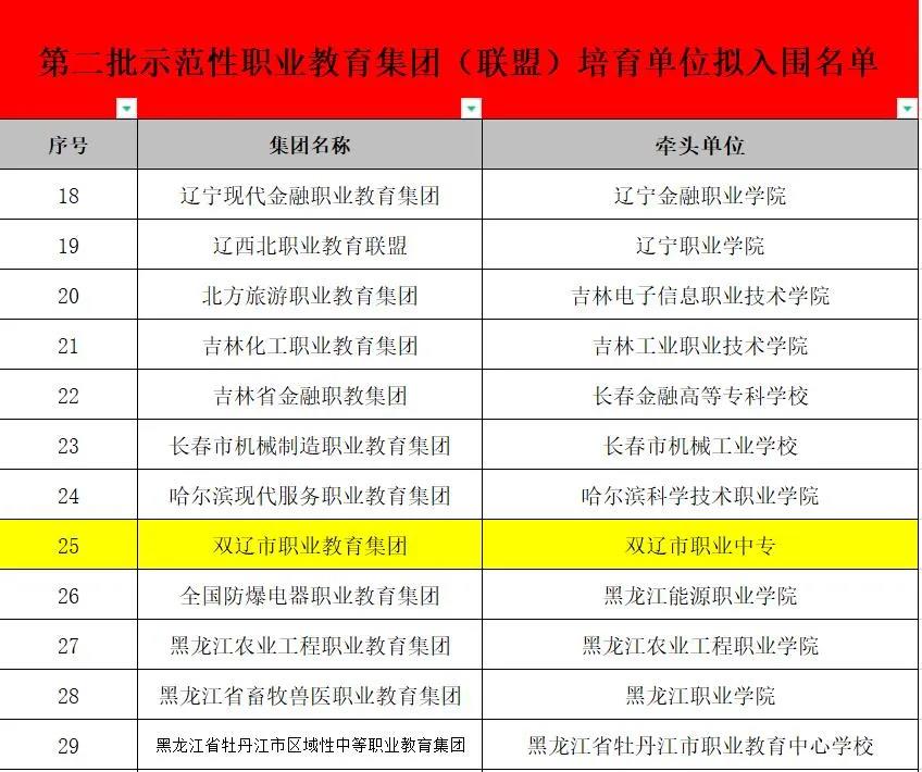 近日,入围全国示范性职业教育集团(联盟)培育单位名单经教育部公示结束,双辽市职业中专牵头的双辽市职业教育集团在全国1400余个职教集团中脱颖而出,入围第二批149个全国示范性职业教育集团(联盟)培育单位。此次吉林省共有五所院校入围,其中高职院校三所,中职院校两所。