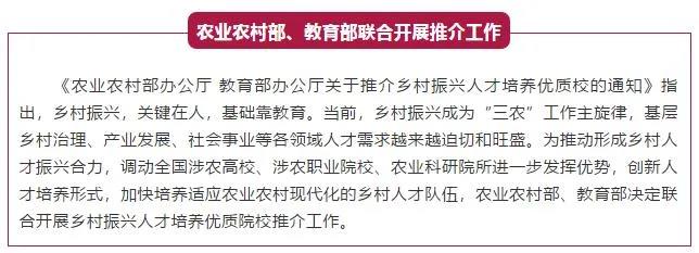 近日,农业农村部科技教育司正式公示乡村振兴人才培养优质校和农业科研院所拟推介名单↓↓↓