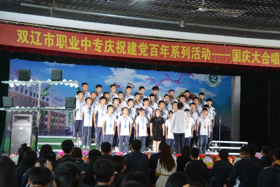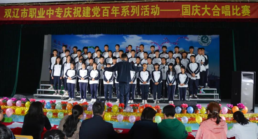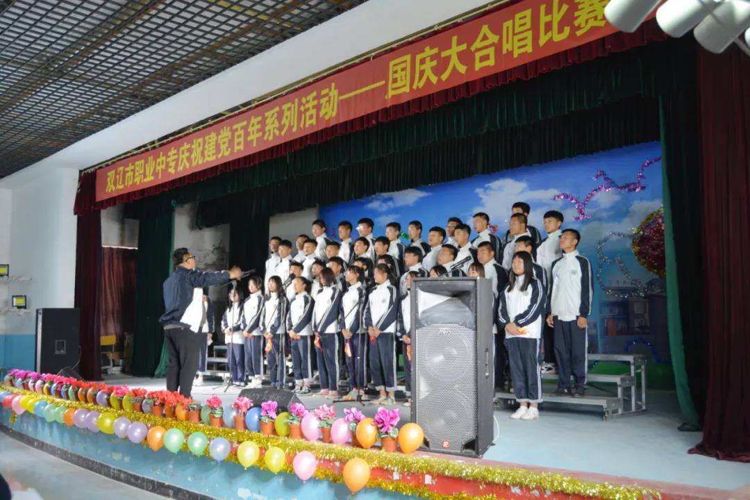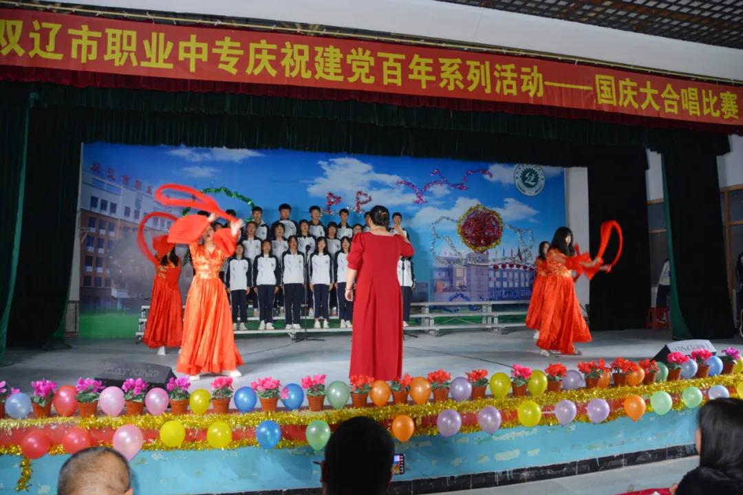 9月29日,双辽市职业中专师生在大礼堂举行了迎国庆大合唱比赛。校长张会、党总支书记左玉卓、工会主席李明纯、副校长巫成彦以及21级全体师生近800人观看了比赛。