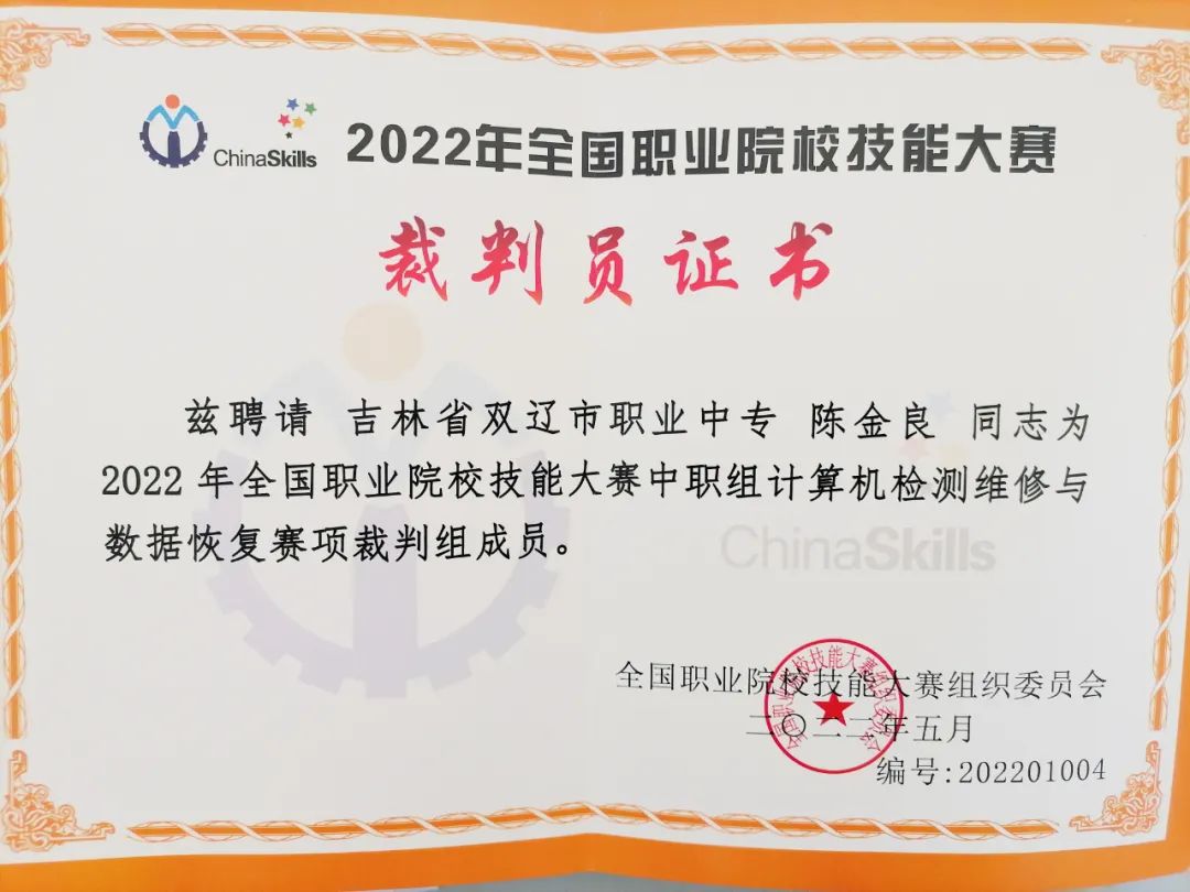 8月8日-11日,2022年全国职业院校技能大赛中职组“计算机检测维修与数据恢复”赛项在广西南宁举办。双辽市职业中专教师陈金良应邀担任赛项裁判,参与“计算机检测维修与数据恢复”赛项现场执裁工作。