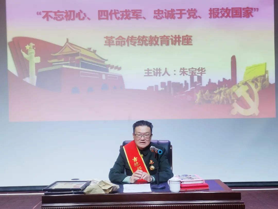 首先由吉林好人、吉林省最美退役軍人、双辽市红色基因传承人朱宝华做了以“不忘初心、 四代戎军、忠诚于党、报效国家”为主题的革命传统教育宣讲,他饱含深情用最质朴的语言,讲述自己的亲身经历以及祖辈投身革命、四代戎军的故事,给全体师生上了一堂生动的革命传统教育课,使师生接受了一次深刻的“红色精神”洗礼。