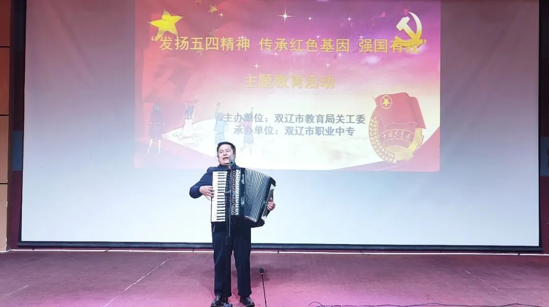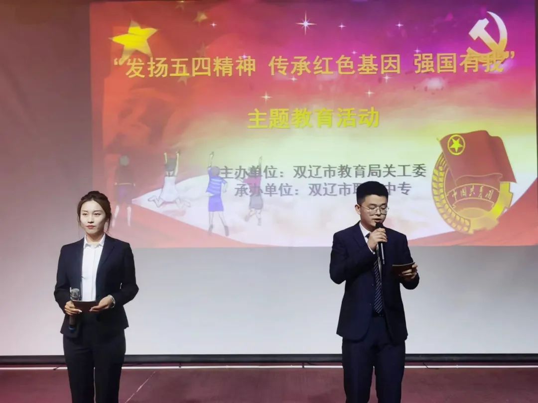 为深入贯彻学习二十大会议精神,进一步激励广大团员青年发扬五四精神,传承红色基因,增强青年的历史责任感和时代使命感,在纪念“五四”运动104周年之际,由双辽市教育局关工委主办,市职业中专承办的“发扬五四精神,传承红色基因,强国有我”主题教育活动于5月9日在职业中专二校区一楼礼堂隆重举行,市关工委副主任、教育局关工委主任张福,教育局关工委副主任冷海峰、王大一,秘书长李娜,讲师团成员,职业中专副校长郭金及师生300余人参加了此次活动。活动由郭金主持。